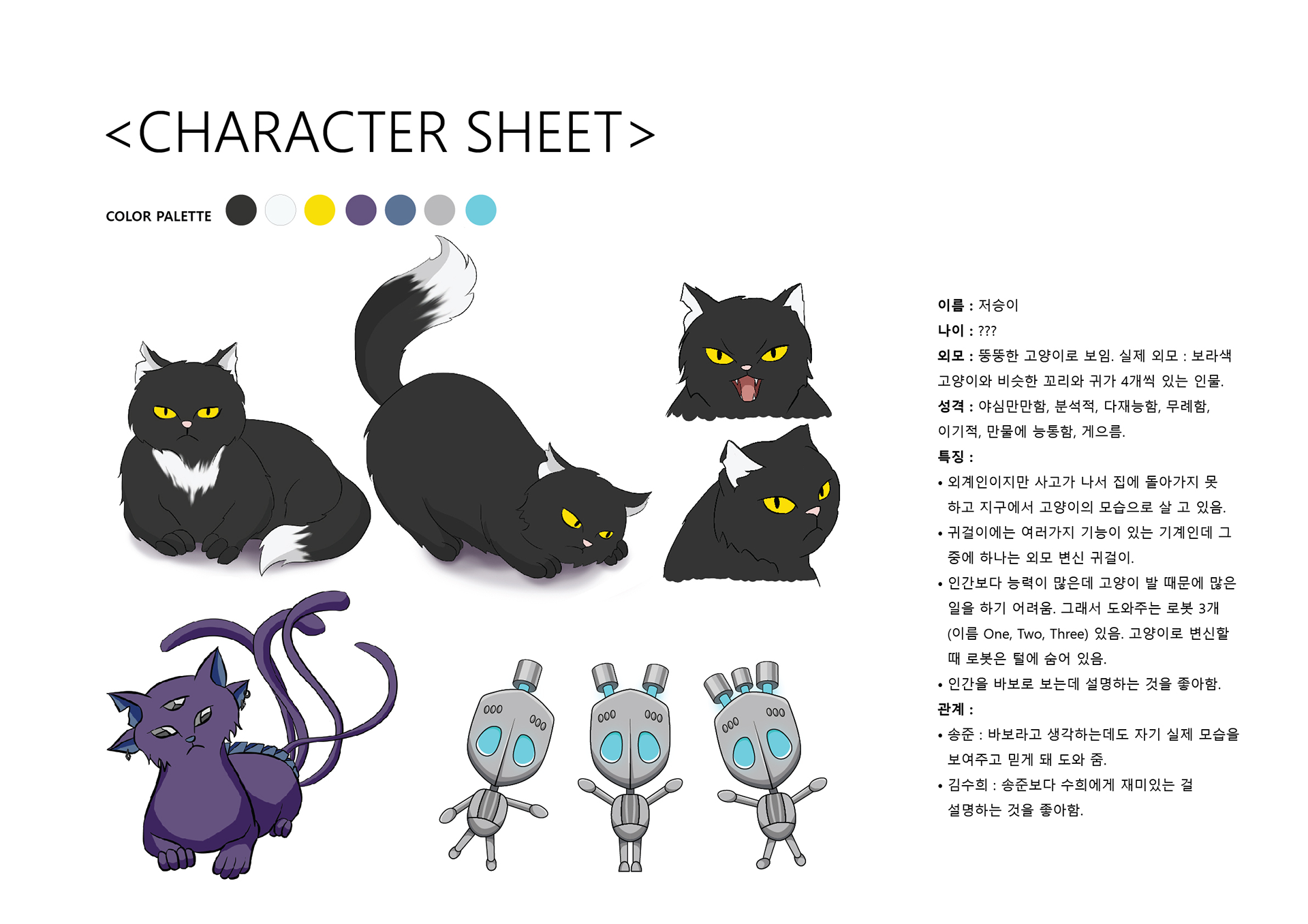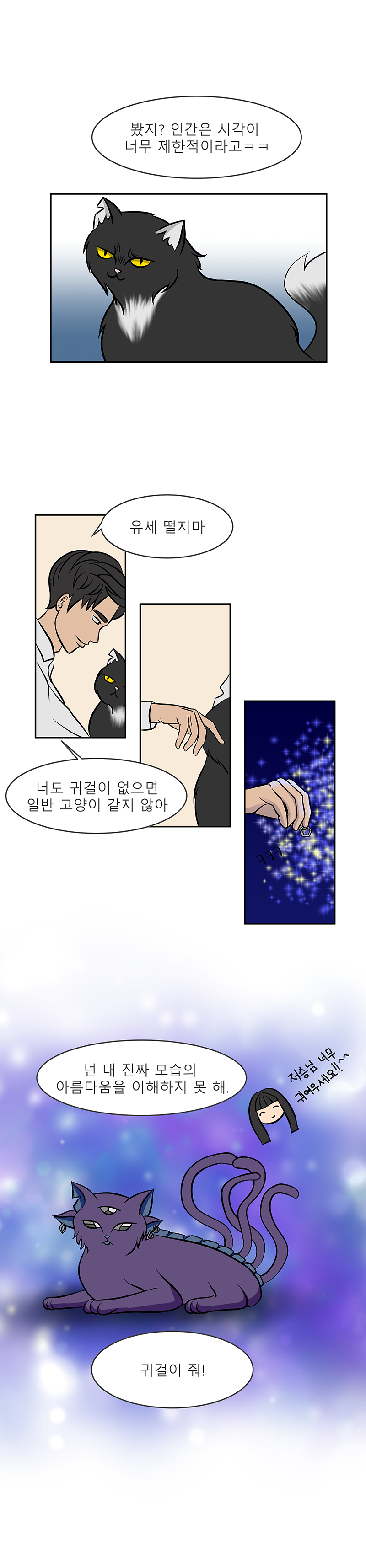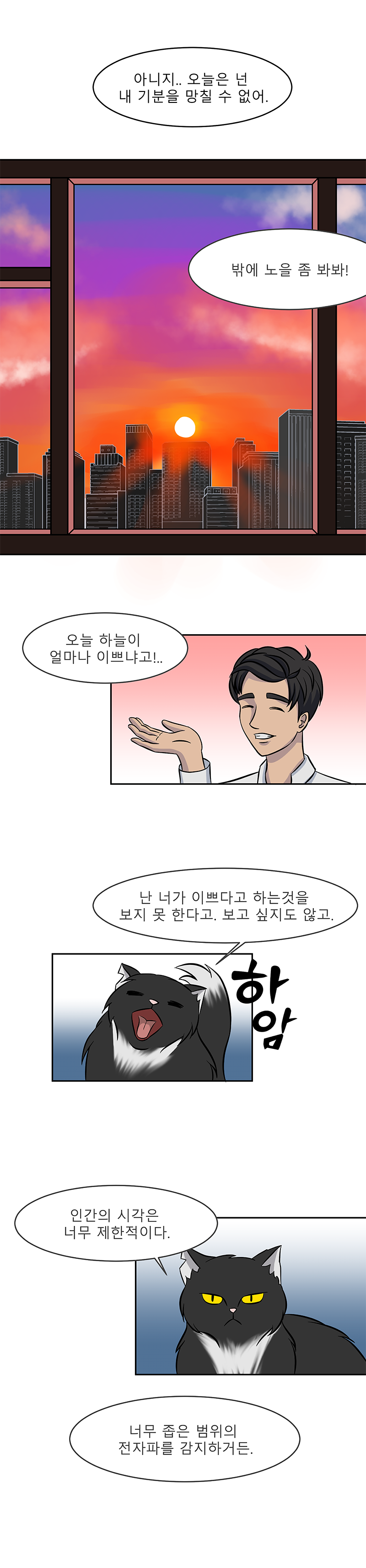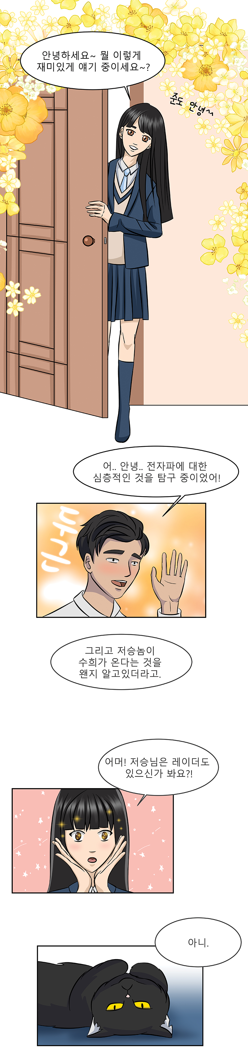 Webtoon story: main character Song Joon discovered that his cat is an alien and can speak human language. Since then, the cat, as a representative of a more developed civilization, has been constantly teaching him, explaining incomprehensible questions to Song Joon about school lessons and about the world around him. Song Joon's excellent student and classmate Kim Soo-hee, when she was bringing homework to Song Joon at the request of the class teacher, saw an alien cat, and since then she often visits Song Joon to ask the cat about various things that interest her.